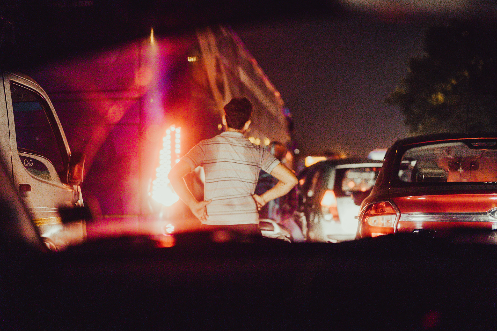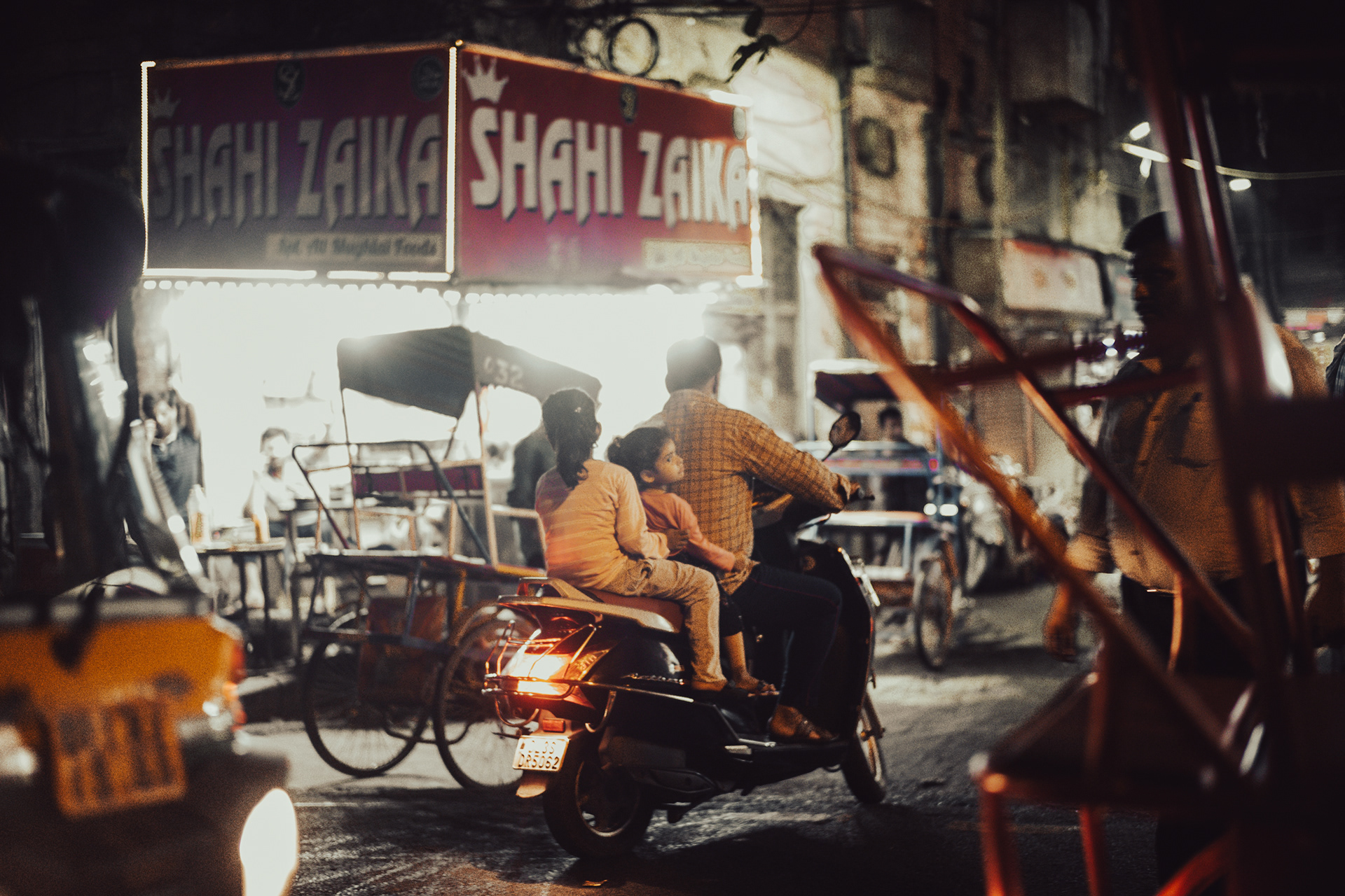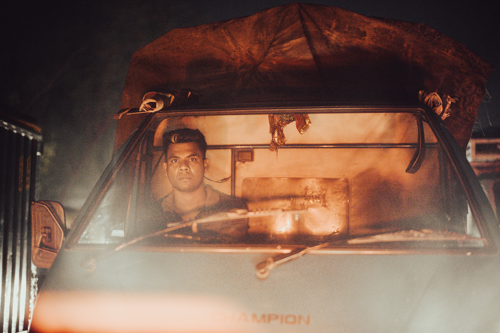 空港からホテルへ向かう道路は大渋滞。あちらこちらでクラクションが鳴り響く。運転手は「いつものことだよ」と、僕に気を使ってか、あまりクラクションを鳴らさなかった。信号待ちで止まった時、「前においでよ」と、運転手が助手席をポンポンと叩く。デリー最初の夜。旅の始まり。